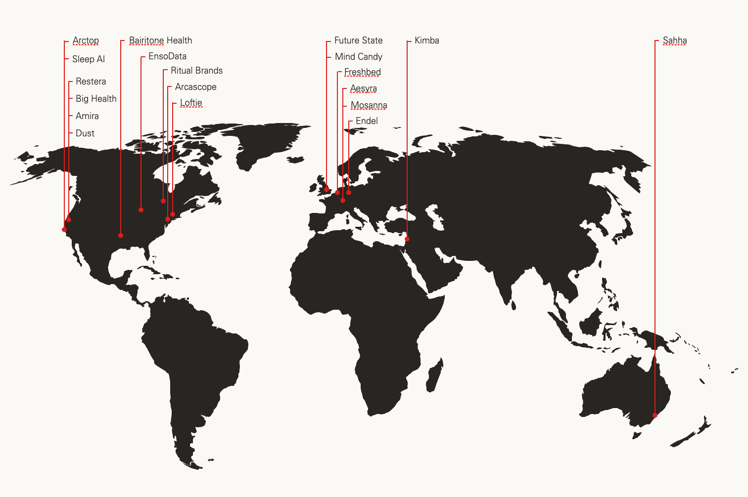 Fortunately for us, centers of sleep science excellence and innovation are distributed globally and our portfolio mirrors this broad distribution. Our portfolio companies span five different states and eight different countries, meaning that no single storm, war, or regional banking failure touches more than a small fraction of our portfolio.